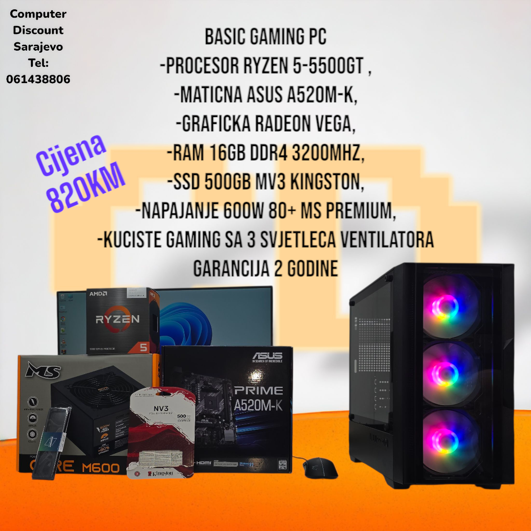 Gaming PC AMD RYZEN 5-5500GT. 16GB RAM, SSD 500GB