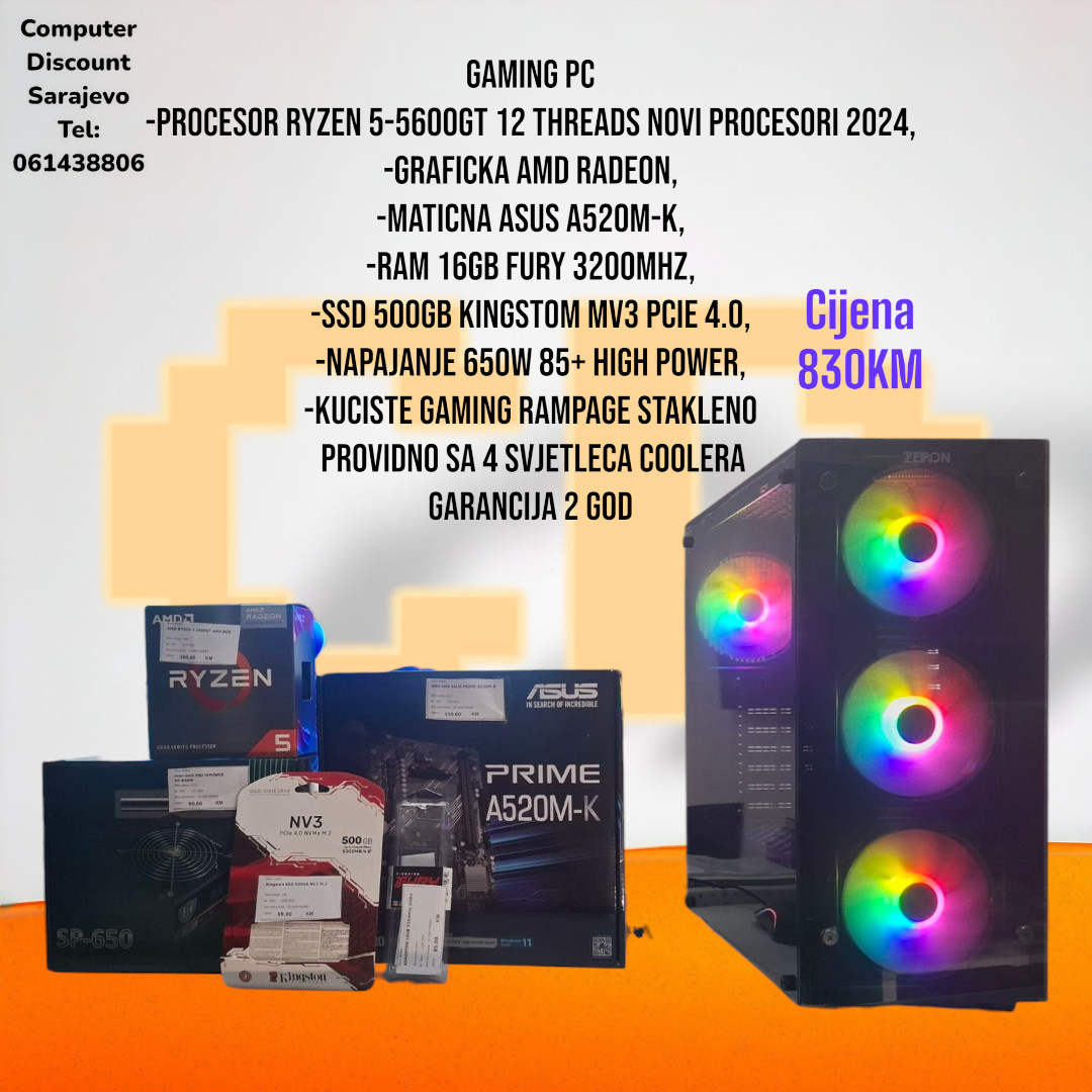 Gaming PC AMD RYZEN 5-5600GT. 16GB RAM, SSD 500GB