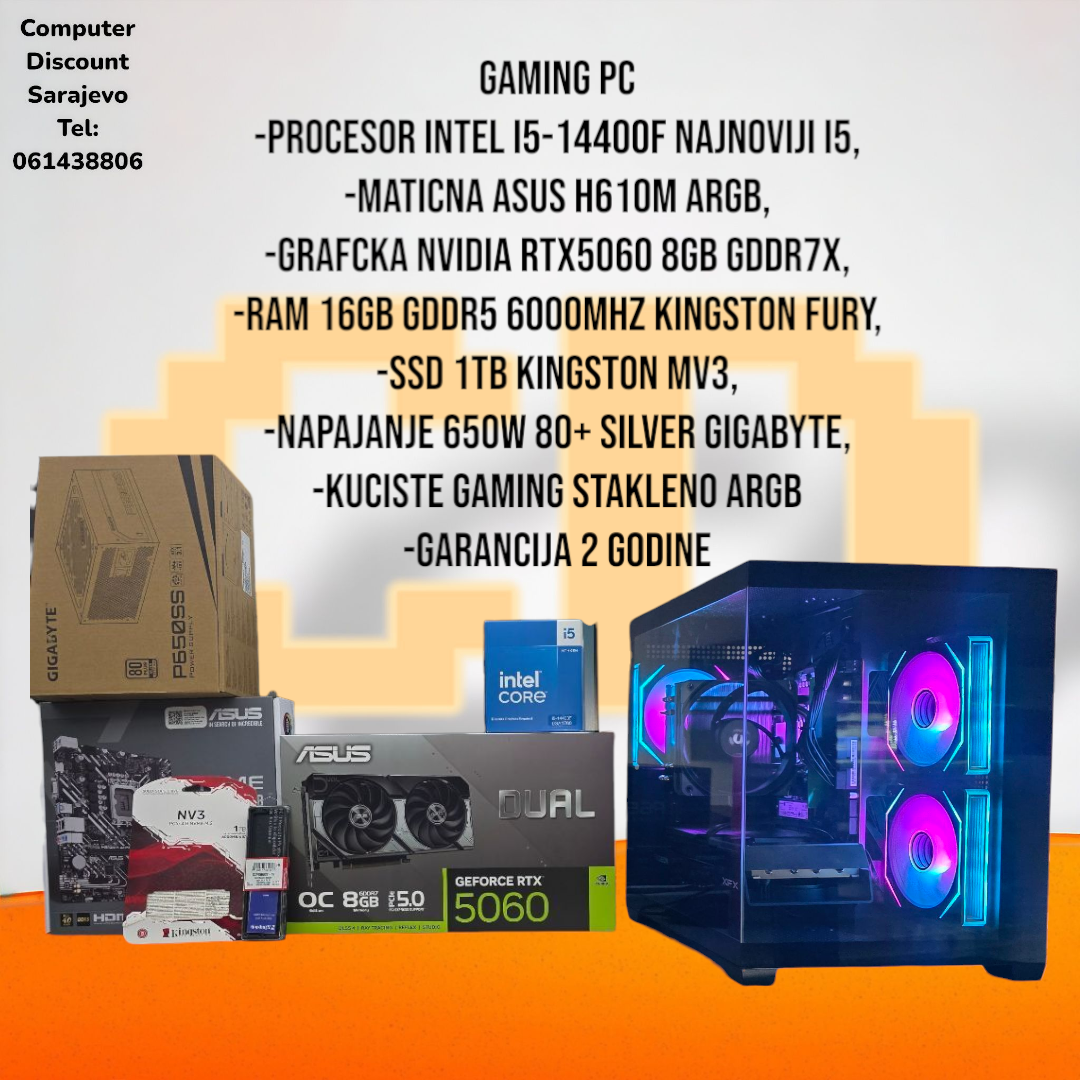 Gaming PC Intel I5-14400F, RTX5060, RAM 16GB DDR5, SSD 1TB