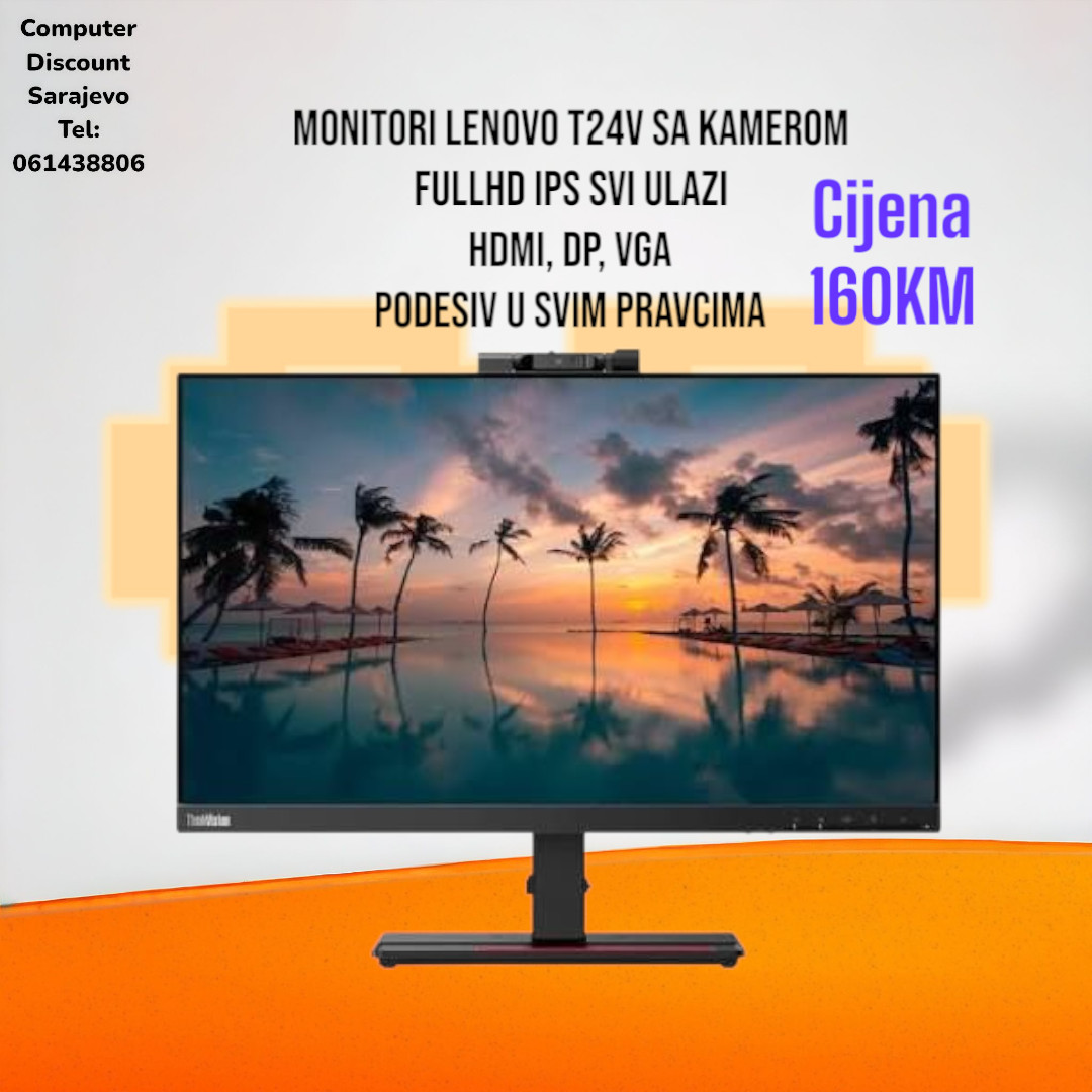 Monitori Lenovo 24”, IPS FULLHD sa svim ulazima HDMI, display port, vga, kao novi, sa sest mjeseci pisane garancije i fiskalnim racunom. Novi model bez ruba sve display sprijeda.